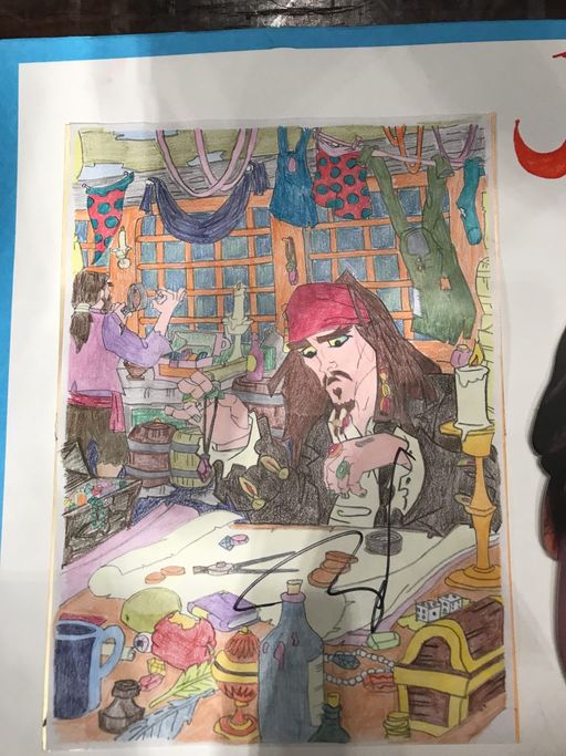 当日は、 偶然作っていたジャック・スパロウのぬりえ と、