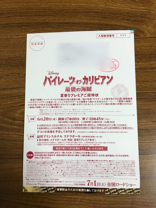 『パイレーツ・オブ・カリビアン4』のプレミアチケットの抽選がある!なんと、ピア(ぴあ)のネット申し込みで 当選!!